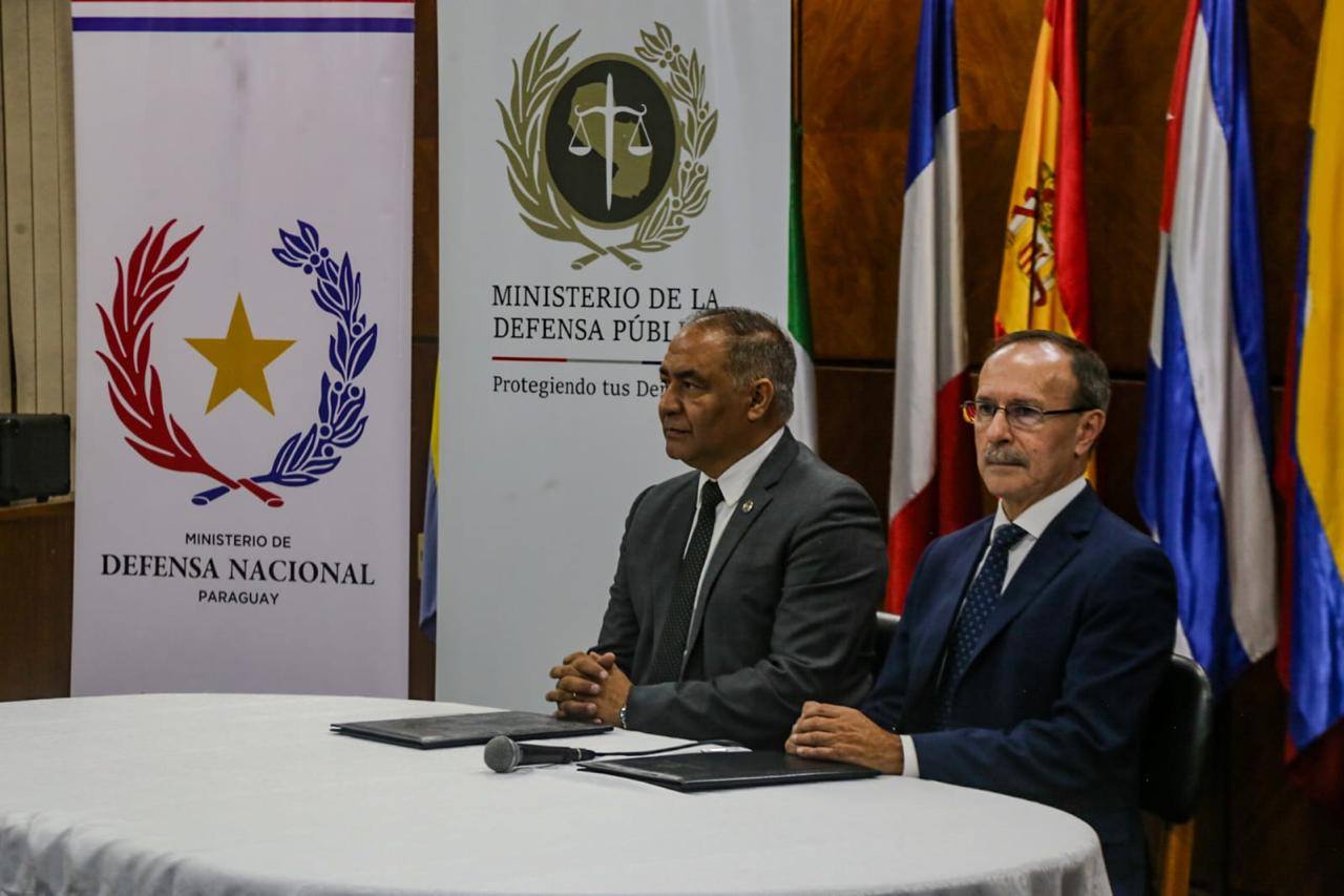 El Ministro de Defensa Nacional, Gral Ej (R) Óscar González; y el Defensor General del Ministerio de la Defensa Pública,…