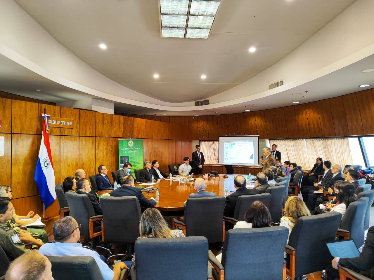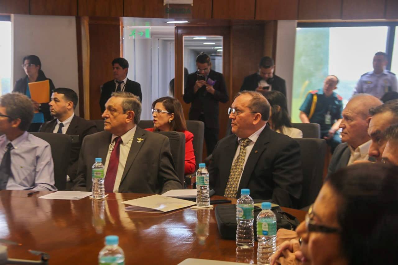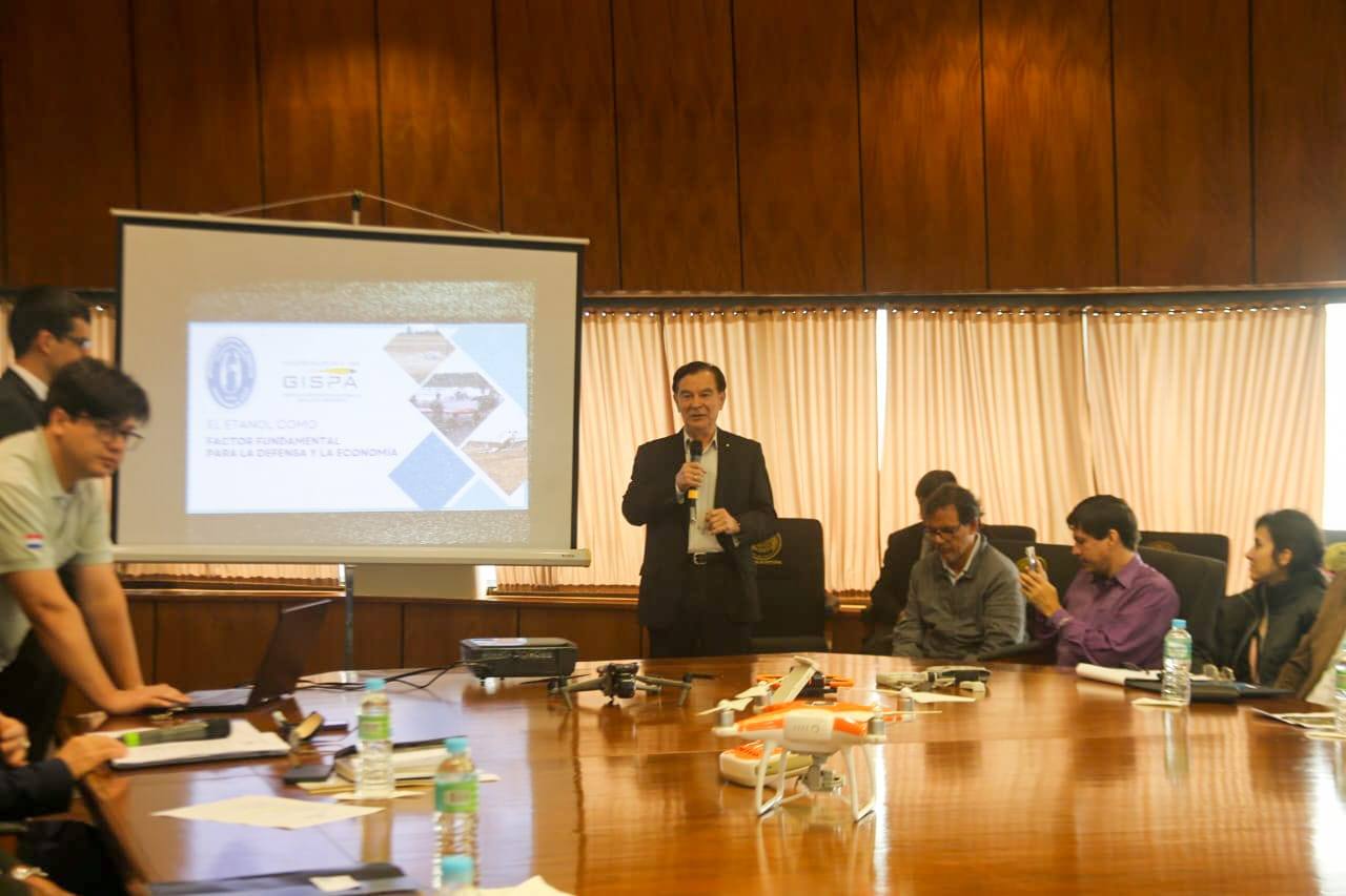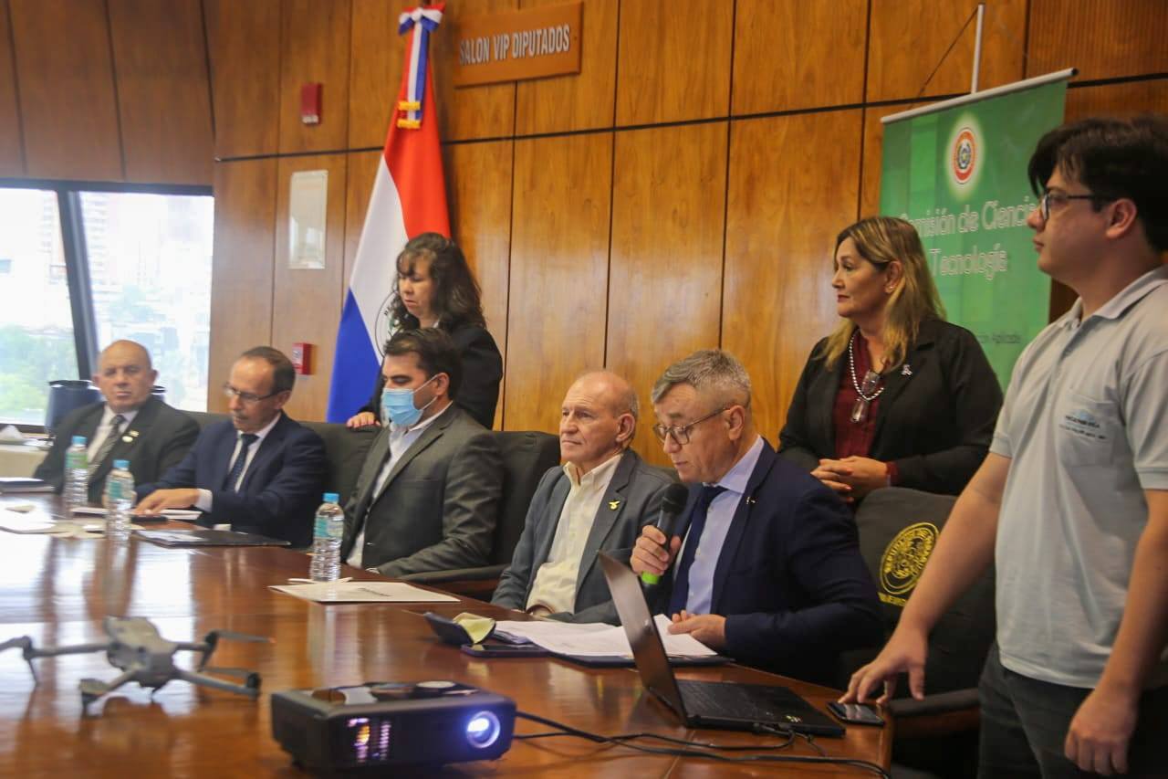 El Ministro de Defensa Nacional, Gral Ej (R) Óscar González, acompañado del Viceministro de Defensa Nacional, Gral Div (R) Lilio Cardozo; del Director de la Dirección General de Material Bélico, Gral Div Melanio Servín; del Asesor y Enlace ante el Congreso Nacional, Gral Div Roberto Olmedo; y del Comandante de la 1° Brigada Aérea, Gral Brig Edgar Leguizamon; participó de la Mesa Técnica de Trabajo Interinstitucional convocada por el presidente de la Comisión Permanente de Asesoramiento de Ciencia y Tecnología de la Honorable Cámara de Diputados del Congreso Nacional, Dip. Nac. Germán Solinger, a fin de responder a las consultas en el marco de la socialización del anteproyecto de Ley sobre el “Uso del Etanol en Aeronaves” y la conformación de la mesa Técnica Interinstitucional respecto al Proyecto de Ley “Que crea el Registro de Drones y regula su uso en la República del Paraguay”, impulsado por el diputado Federico Franco.