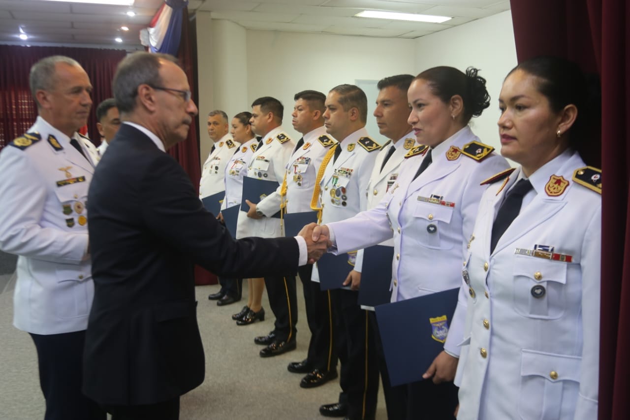 El Ministro de Defensa Nacional, Gral Ej (R) Óscar González, presidió la “Ceremonia de Egreso del Programa de Especialización en Derechos Humanos y Derecho Internacional Humanitario”, desarrollada en el Salón Auditorio “Aviadores del Chaco” del Comando de Institutos Aeronáuticos de Enseñanza (CIAERE).