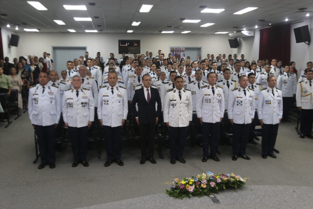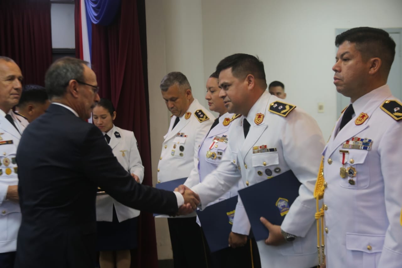 Durante la ceremonia el Ministro de Defensa Nacional hizo entrega de certificados a los egresados que culminaron satisfactoriamente el programa de especialización, cuyo objetivo principal fue fortalecer las capacidades del personal en materia de Derechos Humanos y Derecho Internacional Humanitario, promoviendo una actuación profesional, ética y ajustada a las normas internacionales en el cumplimiento de sus funciones.