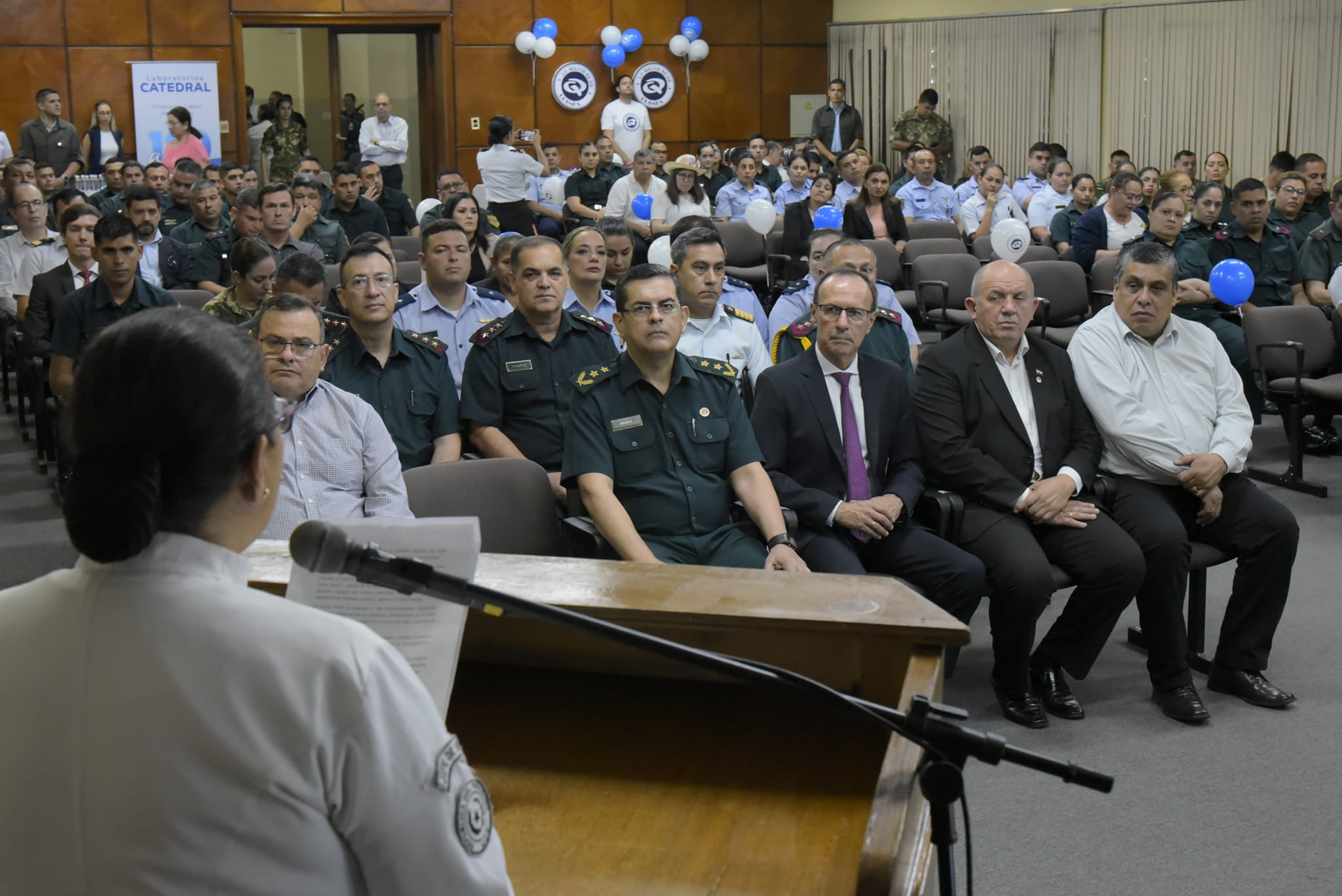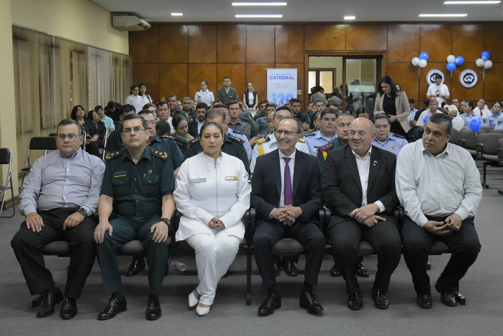 Honraron con su presencia el Viceministro de Defensa Nacional, Gral Div (R) Lilio Cardozo; el Viceministro para las Fuerzas Armadas, Gral Div (R) Bernardino González; los Asesores del Ministro, Gral Div (R) Olivero Almeida y Cnel DCEM (R) Juan Ovelar, la Jefa de la Sección de Sanidad del Ministerio de Defensa Nacional, Cap N DEM Norma Pereira, Directores, Oficiales Generales, Superiores, Subalternos, Suboficiales y Funcionarios Públicos.