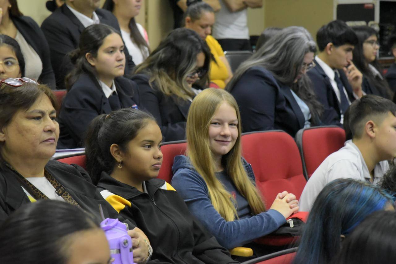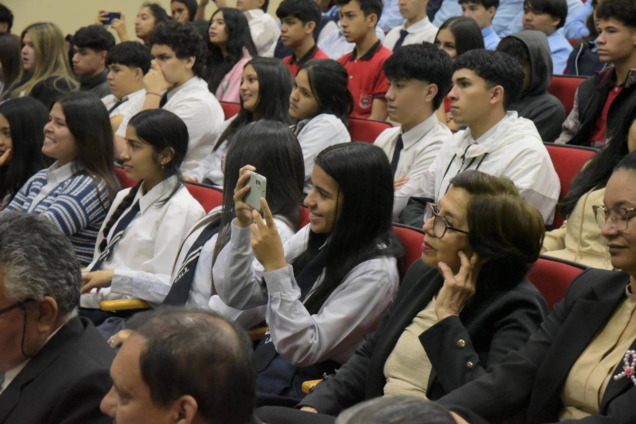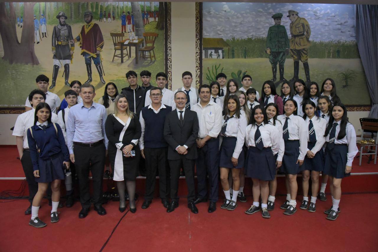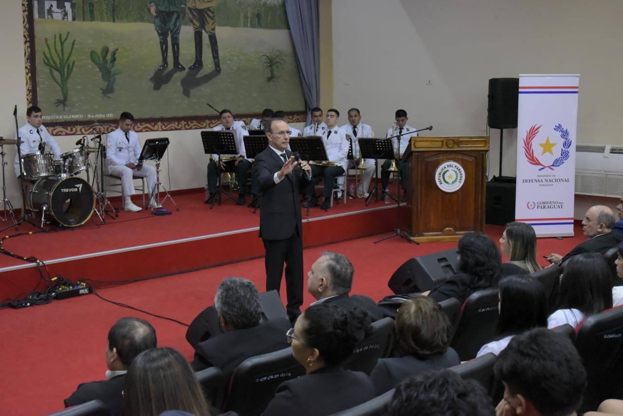 En el salón auditorio “Mariscal José Félix Estigarribia” de esta cartera de Estado el Ministro de Defensa Nacional, Gral Ej (R) Óscar González, ofreció una conferencia magistral titulada “Defensa para el Desarrollo”, dirigida a docentes y alumnos de instituciones educativas del Área Capital.