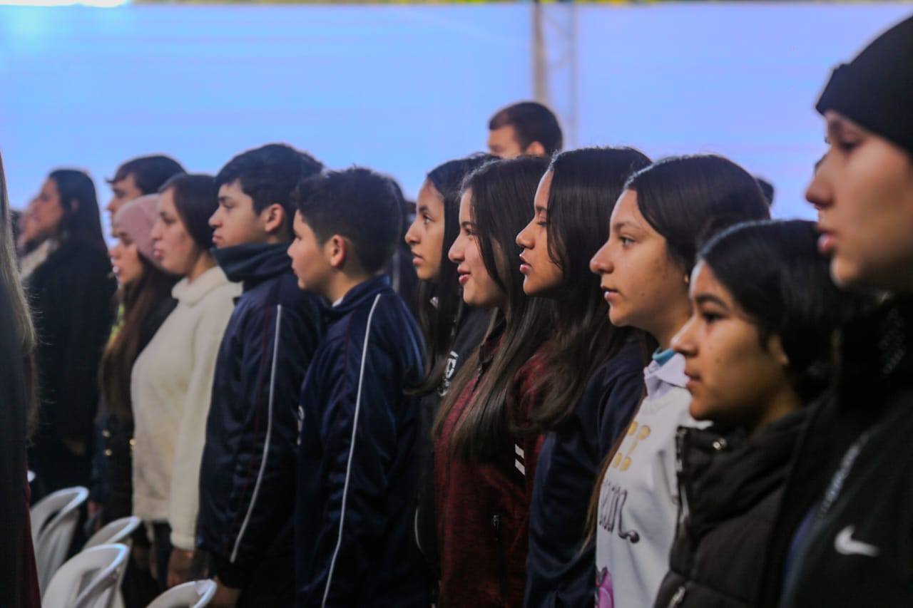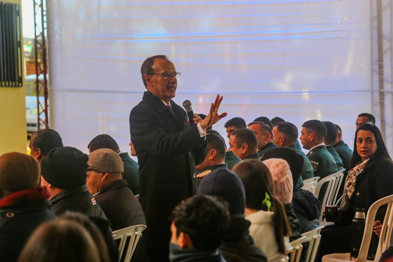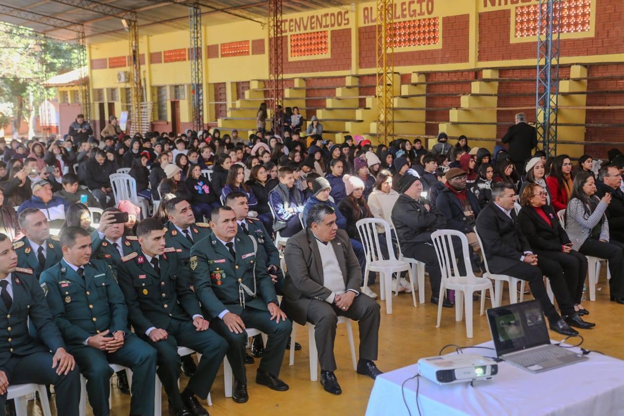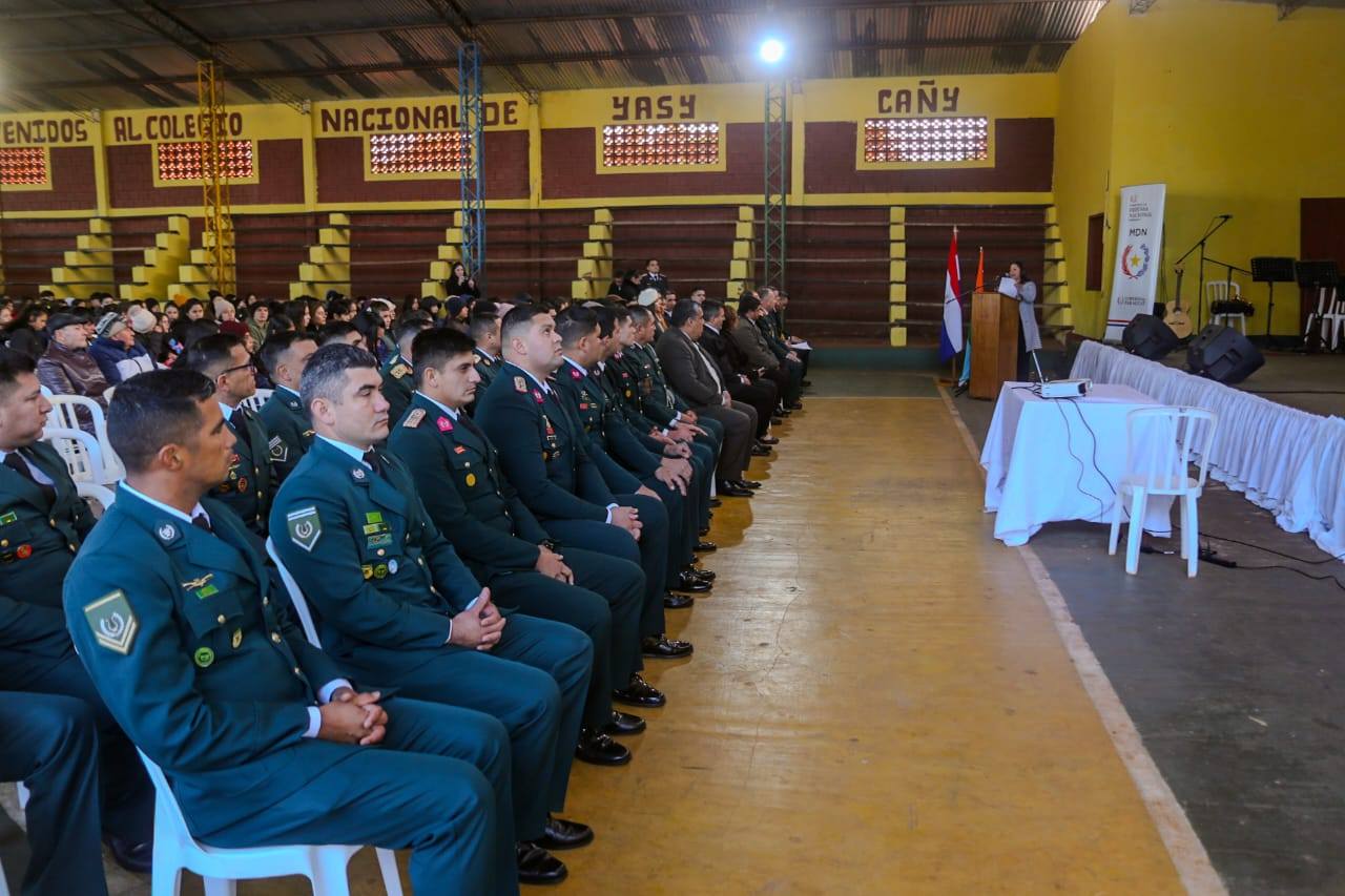 La ciudad de Jasy Cañy, Departamento de Canindeyú, fue sede de la conferencia “Defensa Nacional para el Desarrollo”, impartida por el Ministro de Defensa Nacional, Gral Ej (R) Óscar González, quien abordó el rol estratégico de la defensa como instrumento indispensable para el desarrollo de la nación. El evento convocó a toda la comunidad educativa y contó con una destacada Reseña Histórica Musical a cargo del Gral Div Roberto Olmedo y la Embajada Artística del Ministerio de Defensa Nacional.