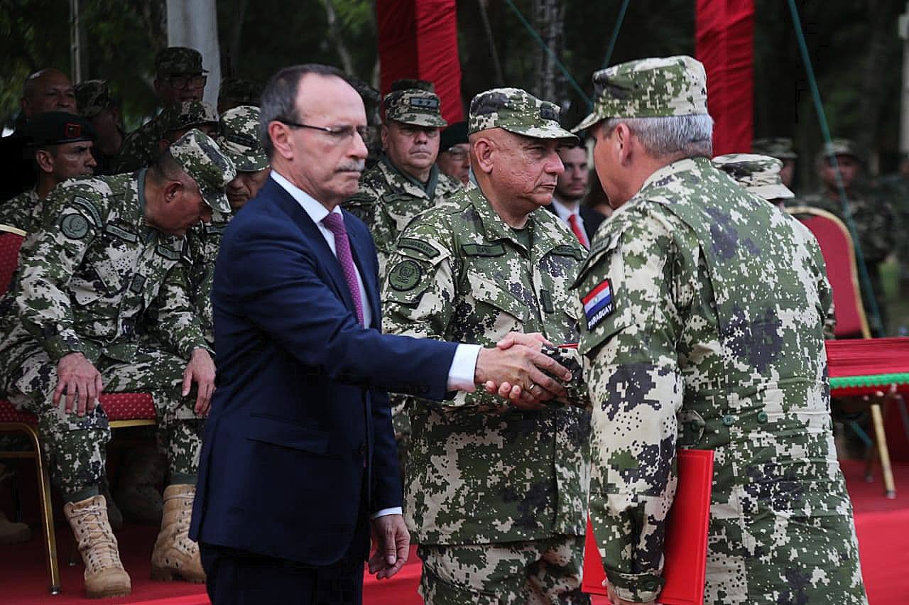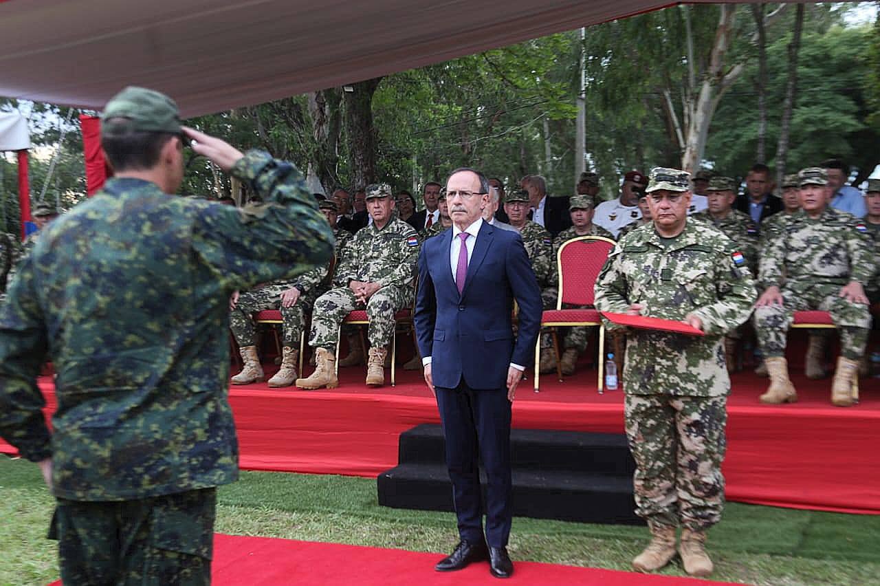 El Ministro de Defensa Nacional, Gral Ej (R) Óscar González, presidió la Ceremonia en Conmemoración al Día de la Infantería Paraguaya, la Victoria de la Batalla de “El Carmen” (en la Guerra del Chaco) y el Natalicio del Gral Brig Eugenio Alejandrino Garay, llevada a cabo en la 1ª División de Infantería “División de Hierro”.