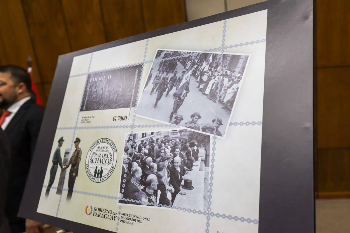 El evento, organizado por la Dirección Nacional de Correos del Paraguay (DINACOPA) y la Comisión Nacional de Puesta en Valor del Congreso Nacional, contó con la presencia de altas autoridades nacionales, legisladores, representantes diplomáticos, miembros de las Fuerzas Armadas y descendientes de excombatientes de la Guerra del Chaco.