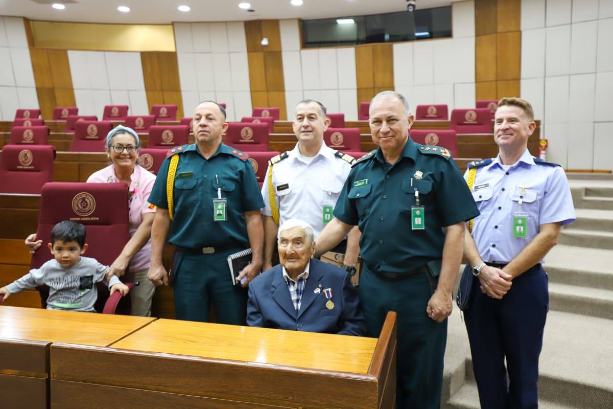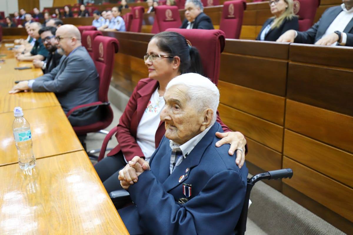 Así mismo prestigio el acto con su presencia el excombatiente de la Guerra del Chaco, don Canuto González Britos, quien a sus 109 años continúa siendo testimonio viviente de aquella epopeya nacional.