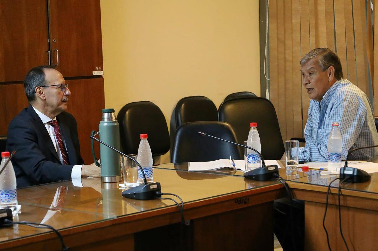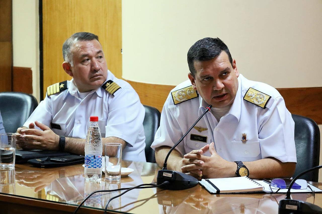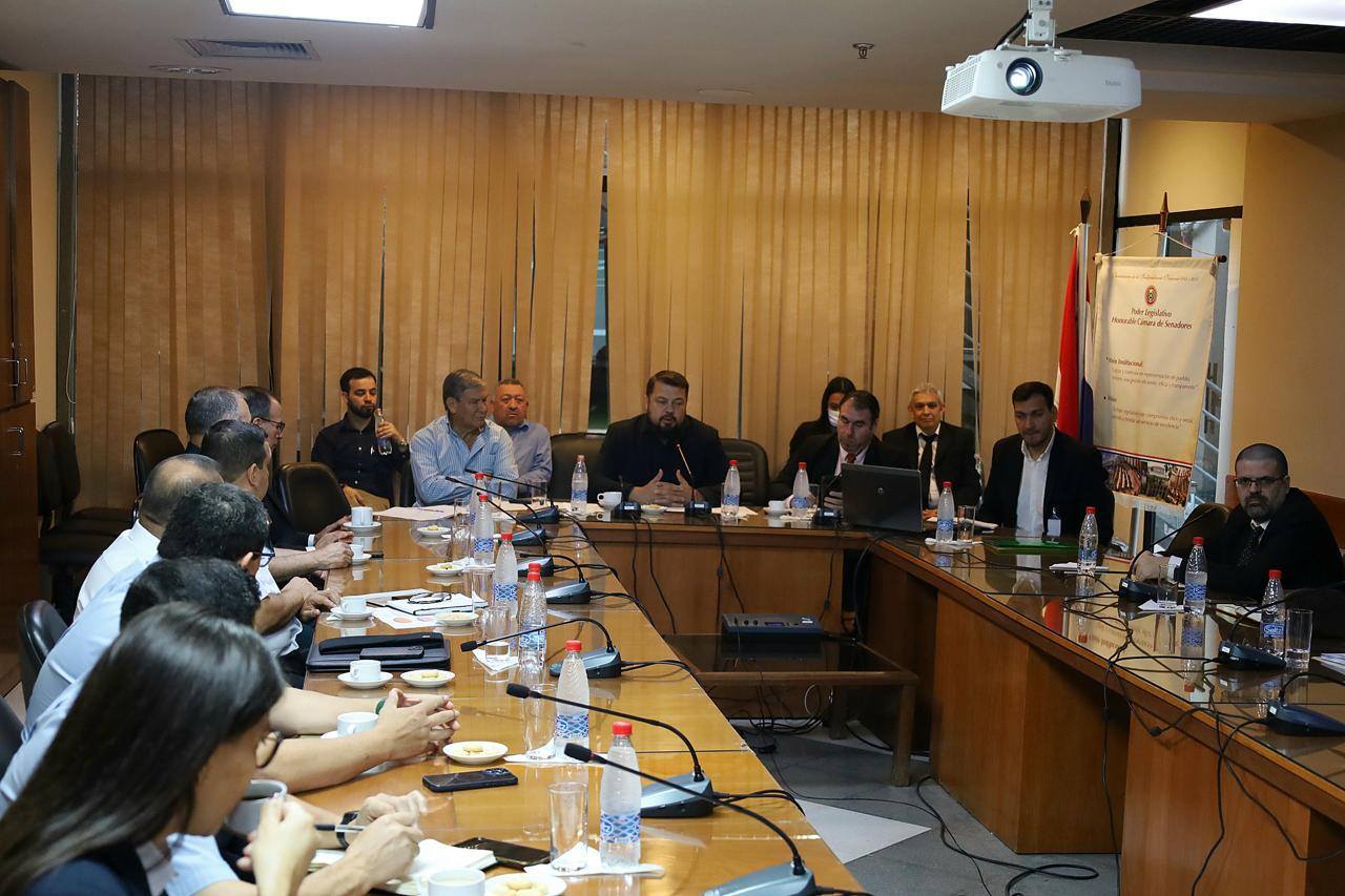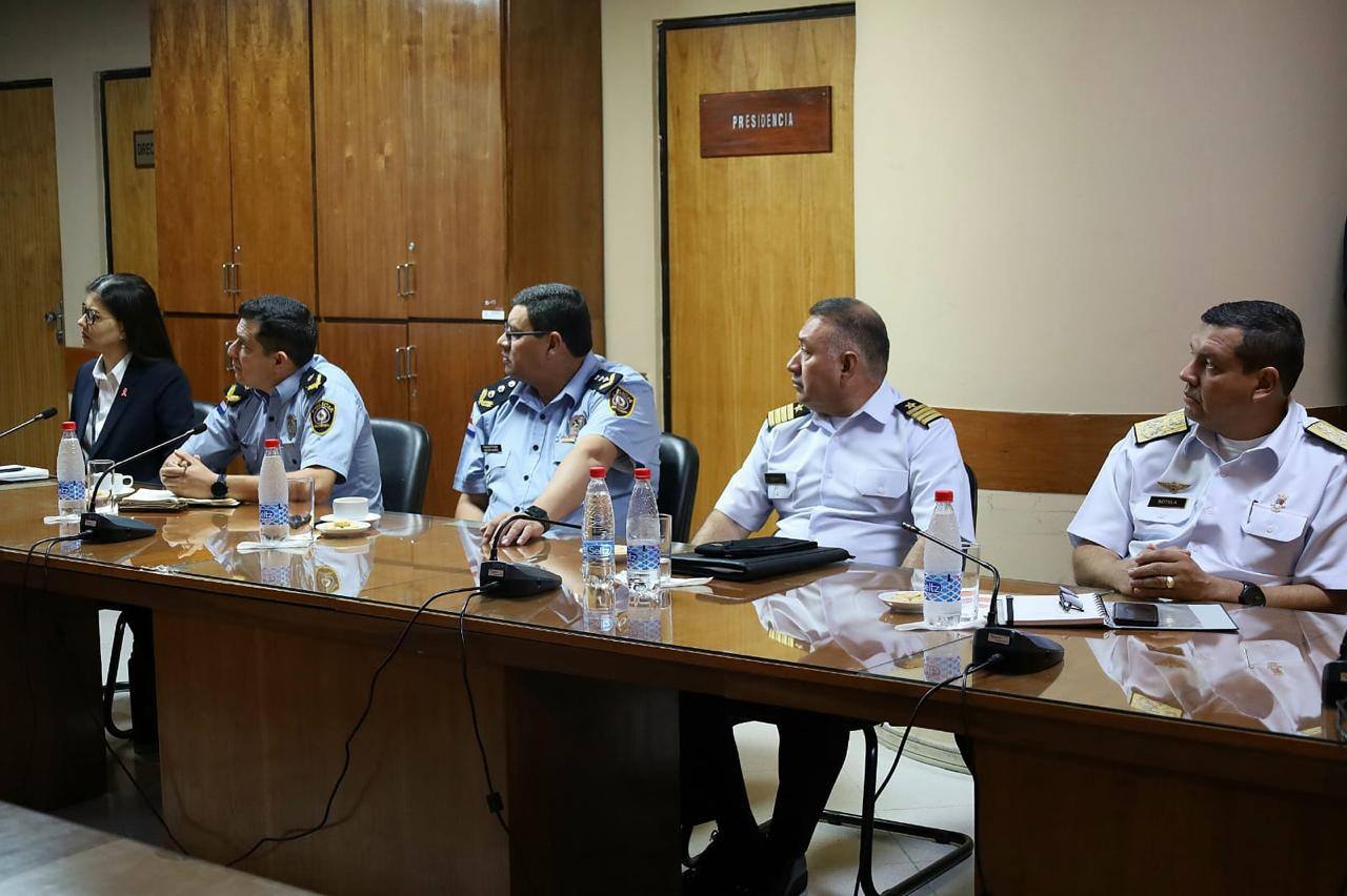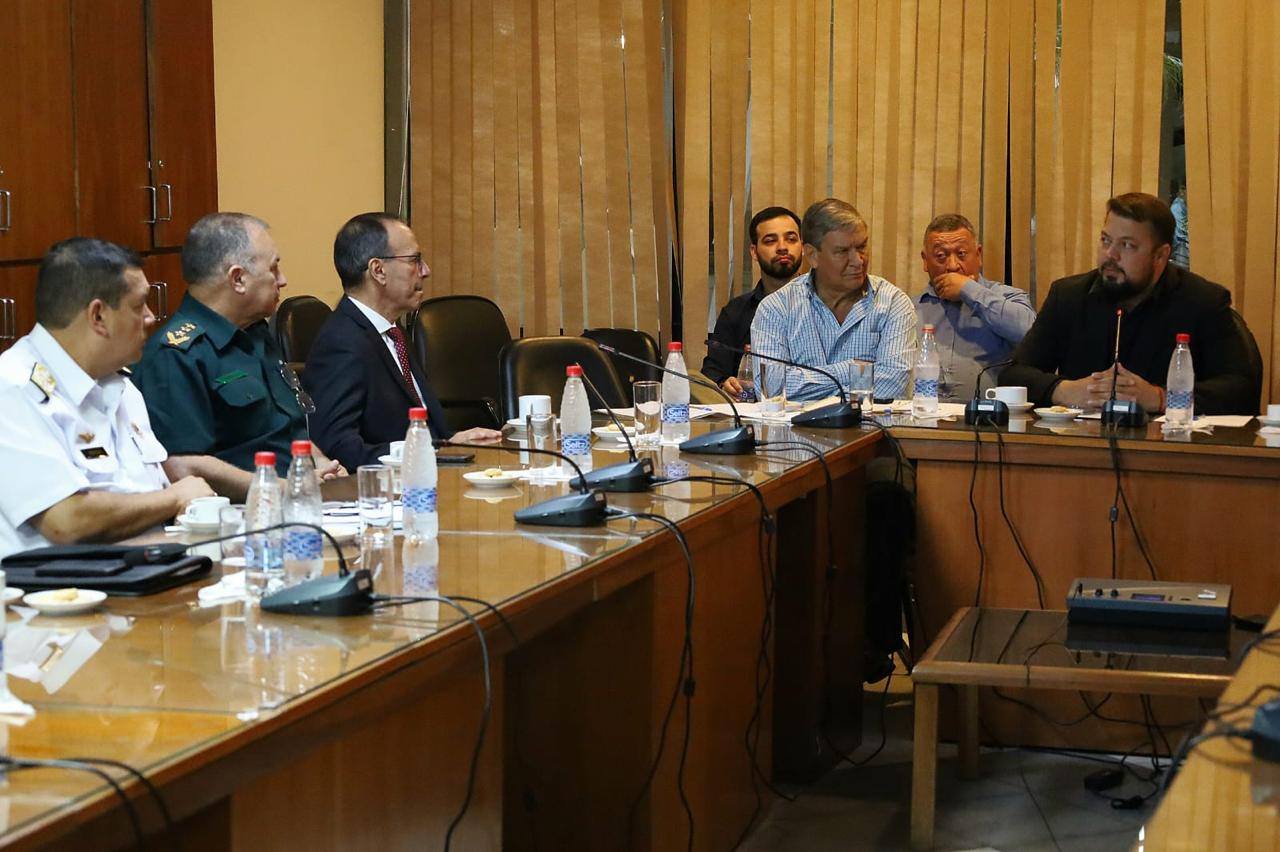 El Ministro de Defensa Nacional, Gral Ej (R) Óscar González, acompañado del Asesor y Enlace ante el Congreso Nacional, Gral Div Roberto Olmedo; y del Comandante Interino de la Armada Paraguaya, VALTE Christian Rotela y asesores, participó de una reunión en el Congreso Nacional convocada por el Presidente de la Comisión de Desarrollo Agropecuario y Lucha contra el Contrabando, Senador Colym Soroka, en el marco de las acciones impulsadas para combatir el contrabando en el país.