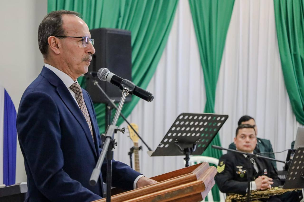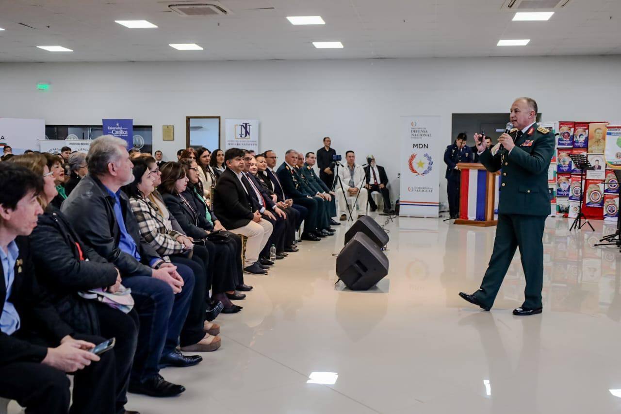 El Ministro de Defensa Nacional, Gral Ej (R) Óscar González, ofreció una conferencia magistral titulada “Defensa para el Desarrollo” dirigida a estudiantes, docentes, autoridades locales, personal militar y civil, en el marco del 3° Festival Departamental “Homenaje a La Paz del Chaco” realizado en la ciudad de San Ignacio Guazú, Departamento de Misiones.