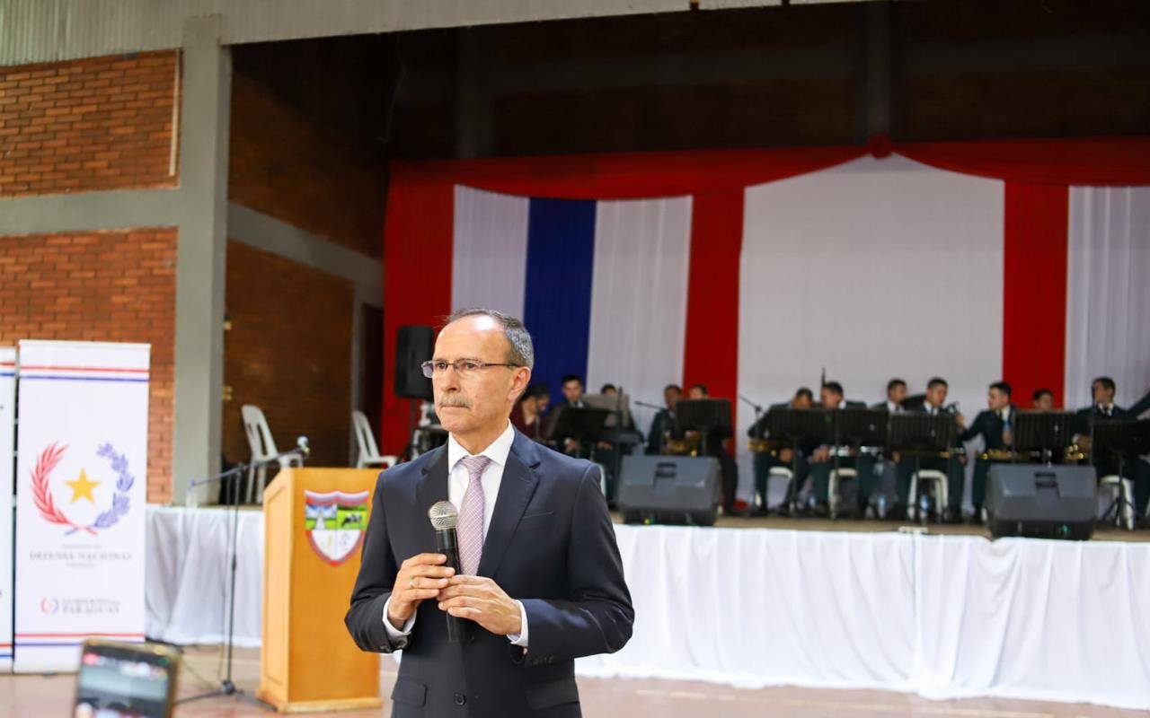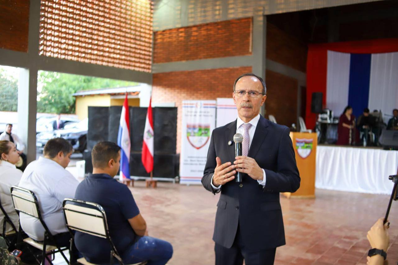 En la ciudad de Itacurubí del Rosario, el Ministro de Defensa Nacional, Gral Ej (R) Óscar González, ofreció una conferencia magistral titulada “Defensa para el Desarrollo”, dirigida a estudiantes, docentes y pobladores. El evento fue declarado de Interés Educativo por la Dirección Departamental de San Pedro y por la Junta Municipal de Itacurubí del Rosario, que además distinguió al Ministro como “Visitante Ilustre”, otorgándole un certificado de reconocimiento por su valiosa labor en la difusión de la Defensa.