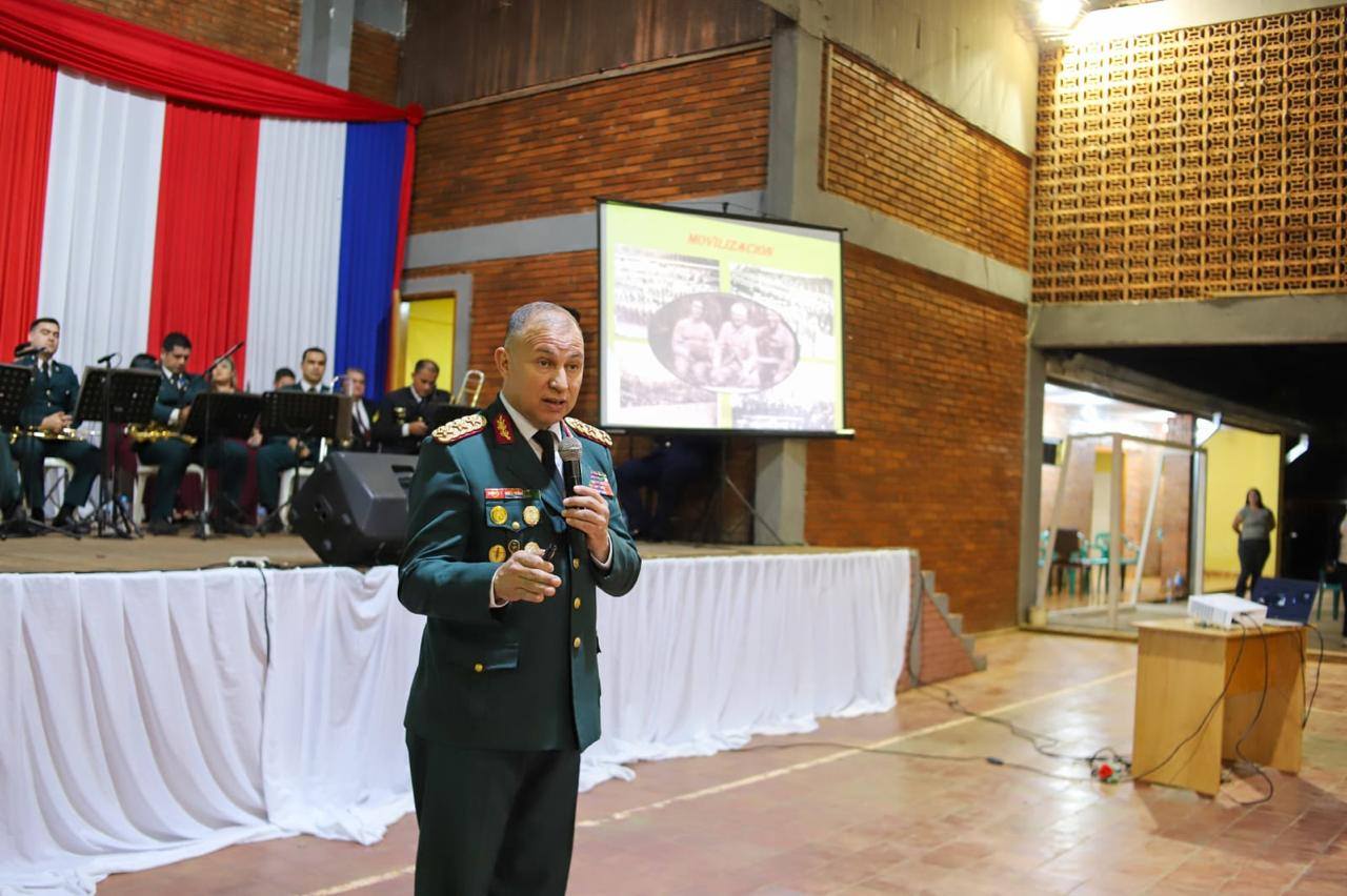 Durante el programa el Gral Div Roberto Olmedo, acompañado por la Embajada Artística del Ministerio de Defensa Nacional, presentó una reseña histórica musical sobre la Guerra del Chaco, que dio al acto un marco emotivo y cultural.