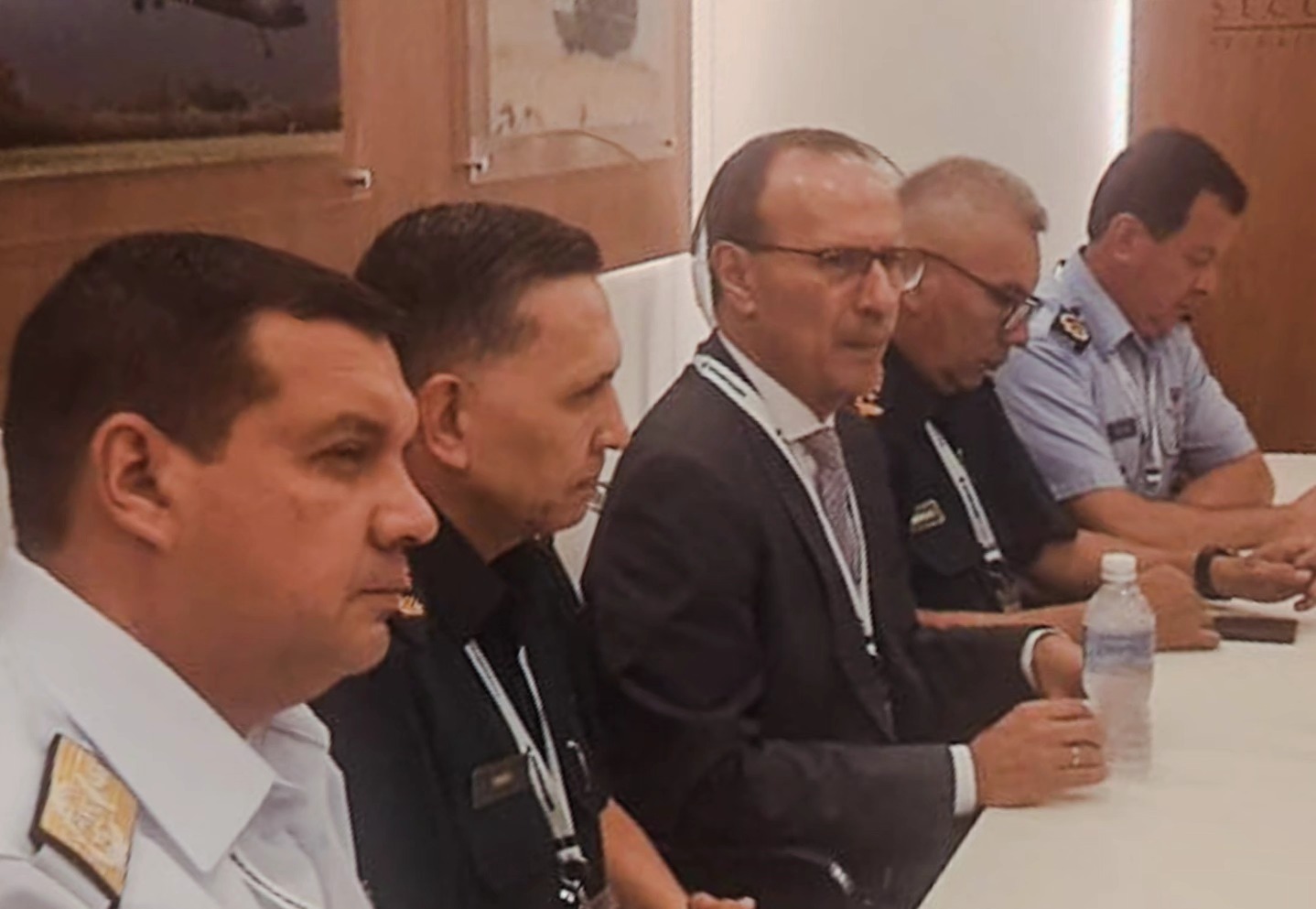 El Ministro de Defensa Nacional, Gral Ej (R) Óscar González; juntamente con el Comandante del Ejército Paraguayo, Gral Ej Manuel Rodríguez; el Jefe de Estado Mayor Conjunto, Gral Div Nery Torres; el Jefe de Estado Mayor de la Fuerza Aérea, Gral Div Aer Roberto Idoyaga; y el Jefe de Estado Mayor de la Armada, Valte Christian Rotela; se reunió con la Sra. Laura E. Cressey, Directora de la Oficina Regional de Seguridad del Departamento de Estado de Estados Unidos de América (USA por sus siglas en inglés) y el Sr. Robert Helfant de la Agencia de Cooperación para la Defensa y Seguridad del Departamento de Defensa de USA.