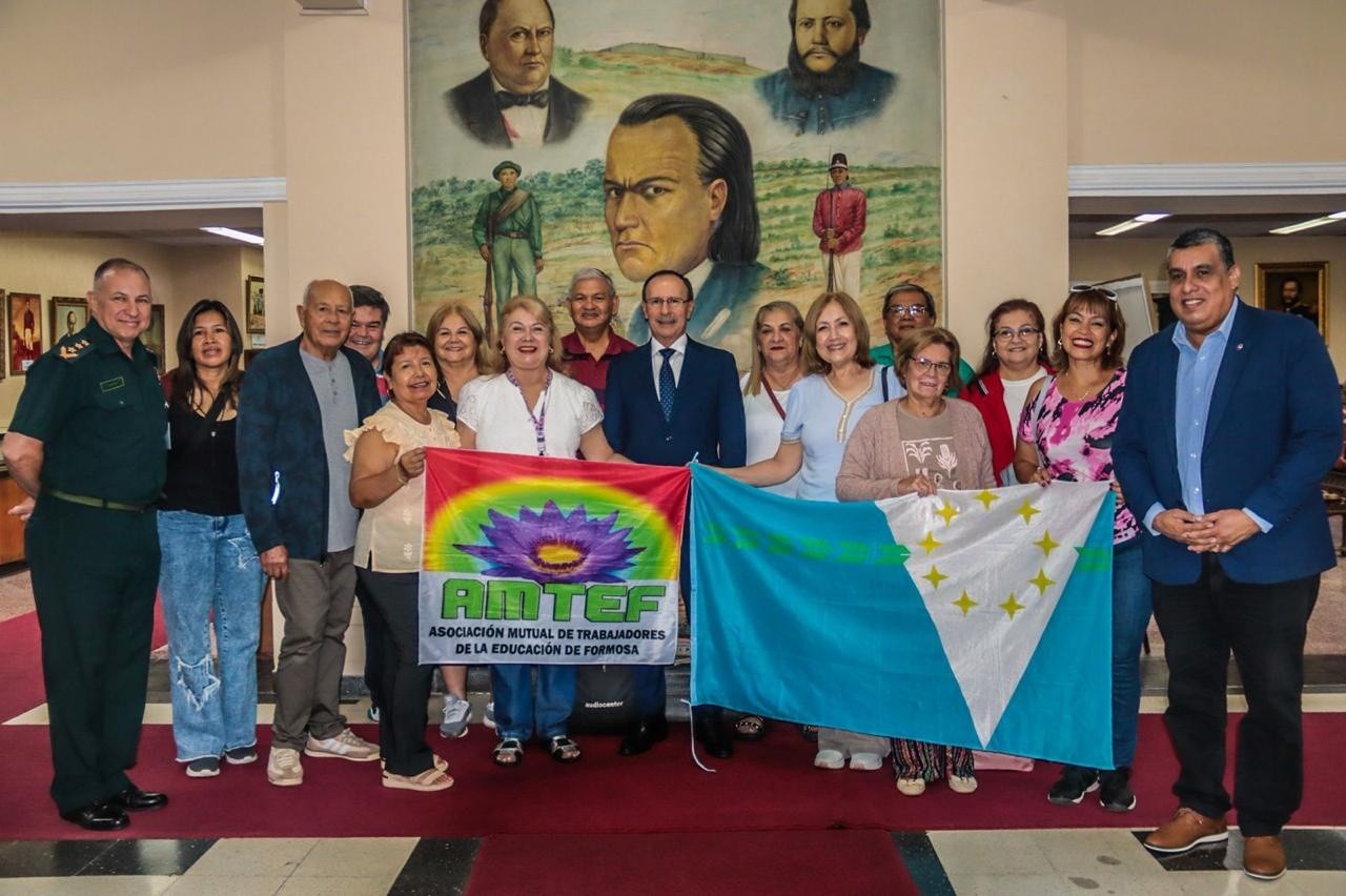 El Ministro de Defensa Nacional, Gral Ej (R) Óscar González; acompañado por el Viceministro para las Fuerzas Armadas, Gral Div (R) Bernardino González; y por el Asesor ante el Congreso Nacional, Gral Div Roberto Olmedo; recibió a la delegación de la Asociación Mutual de Trabajadores de la Educación de Formosa (AMTEF) de la República Argentina.